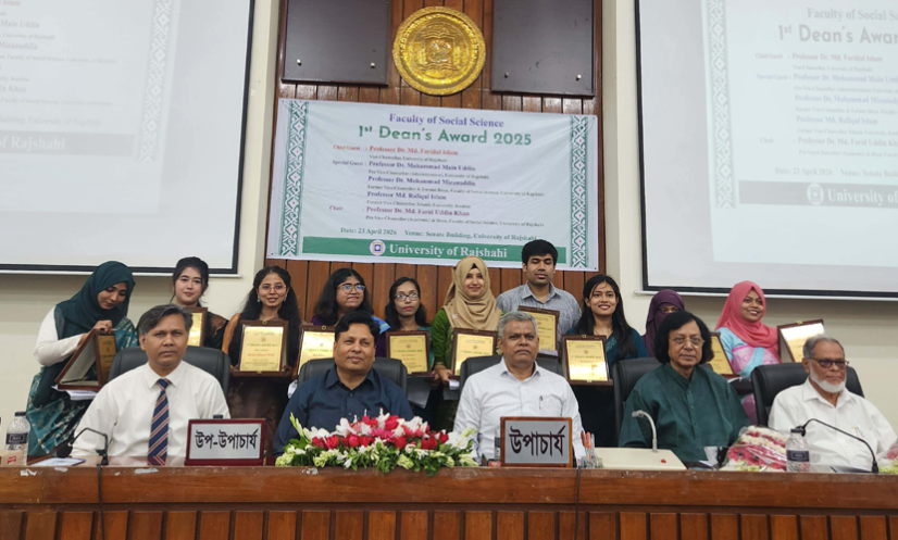 রাজশাহী: রাজশাহী বিশ্ববিদ্যালয়ের (রাবি) সামাজিক বিজ্ঞান অনুষদের ৪০ বছরের ইতিহাসে প্রথমবারের মতো ডিনস অ্যাওয়ার্ড দেওয়া হয়েছে। এতে অনুষদের ১০টি বিভাগের ১০ জন শিক্ষার্থী এবং ৩টি ক্যাটাগরিতে ৩ জন শিক্ষককে পুরস্কৃত করা হয়েছে।