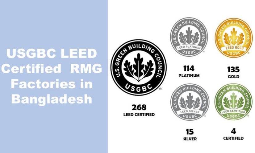 ইউএসজিবিসির তথ্য অনুযায়ী, বর্তমানে বাংলাদেশের ২৬৮টি গ্রিন কারখানার মধ্যে ১১৪টি প্লাটিনাম, ১৩৫টি গোল্ড, ১৫টি সিলভার এবং ৪টি সার্টিফায়েড ক্যাটাগরির। এছাড়া আরও ৫৫০টির বেশি কারখানা নিবন্ধন বা সার্টিফিকেশনের প্রক্রিয়ায় রয়েছে।