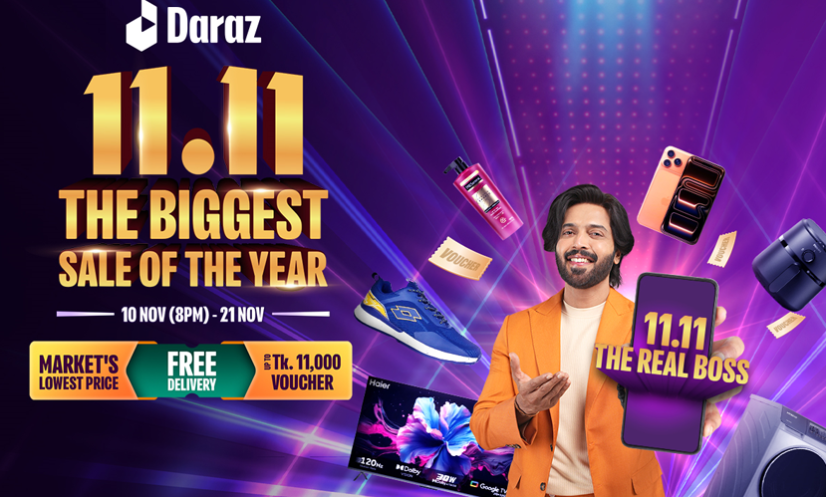 ঢাকা: দেশের শীর্ষ ই-কমার্স প্রতিষ্ঠান দারাজ বাংলাদেশ আবারও নিয়ে এসেছে বছরের সবচেয়ে বড় বিক্রয় উৎসব—‘১১.১১ ক্যাম্পেইন’, যার মূল প্রতিপাদ্য ‘দ্য রিয়েল বস’। বিক্রয় উৎসবটি শুরু হবে ১০ নভেম্বর থেকে এবং চলবে ২১ নভেম্বর পর্যন্ত।