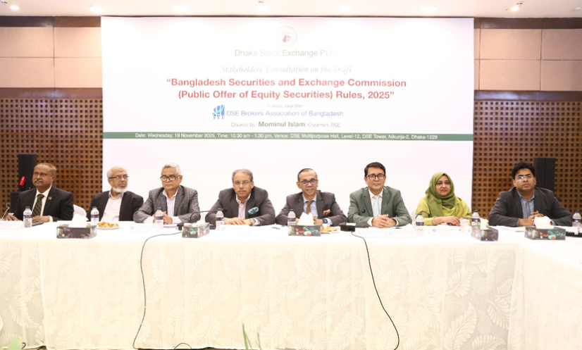 রাজধানীর নিকুঞ্জে ডিএসই টাওয়ারে অনুষ্ঠিত ‘বাংলাদেশ সিকিউরিটিজ অ্যান্ড এক্সচেঞ্জ কমিশন রুলস, ২০২৫’ শীর্ষক বৈঠক।