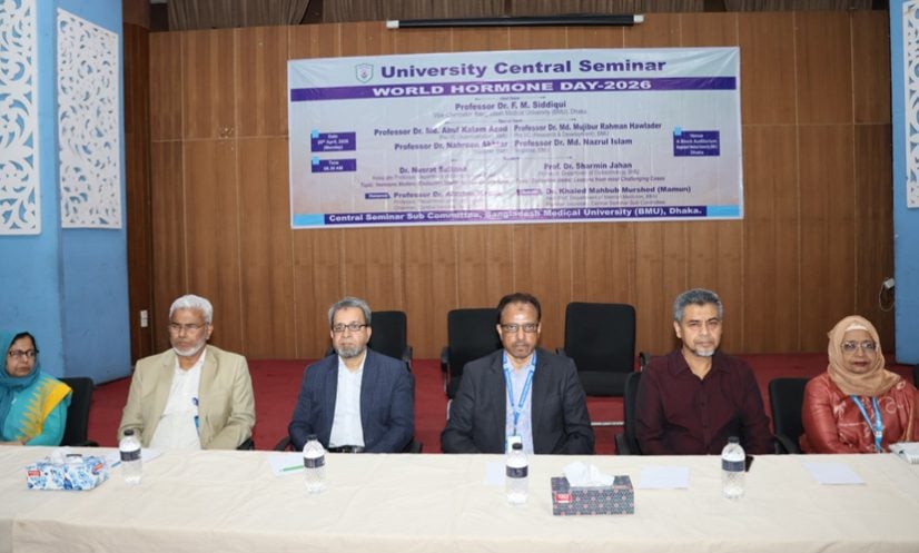 সোমবার (২০ এপ্রিল) বাংলাদেশ মেডিক্যাল বিশ্ববিদ্যালয়ে (বিএমইউতে) আয়োজিত ‘ওয়ার্ল্ড হরমোন ডে ২০২৬’ শীর্ষক ইউনিভার্সিটি সেন্ট্রাল সেমিনারে বক্তারা এসব কথা বলেন। সেমিনারে মানবদেহে হরমোনের সঠিক ভারসাম্য রক্ষা, মানবদেহ ও বিভিন্ন রোগ হরমোনের বিস্তর প্রভাব সম্পর্কে জানাসহ জটিল হরমোনজনিত রোগ নির্ণয় ও চিকিৎসার ওপর গুরুত্বারোপ করা হয়।