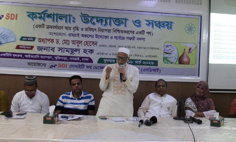 ঢাকা: তৃণমূল উদ্যোক্তাদের আর্থিক নিরাপত্তা নিশ্চিত করা, ব্যবসা সম্প্রসারণে সহায়তা প্রদান এবং সঞ্চয়ের সংস্কৃতি গড়ে তোলার লক্ষ্যে সোসাইটি ফর ডেভেলপমেন্ট ইনিশিয়েটিভস (এসডিআই) ‘উদ্যোক্তা ও সঞ্চয়: একটি ক্রমবর্ধমান আয় বৃদ্ধি ও ভবিষ্যৎ নিরাপত্তা নিশ্চিতকরণের পথ’ শীর্ষক কর্মশালার আয়োজন করেছে।