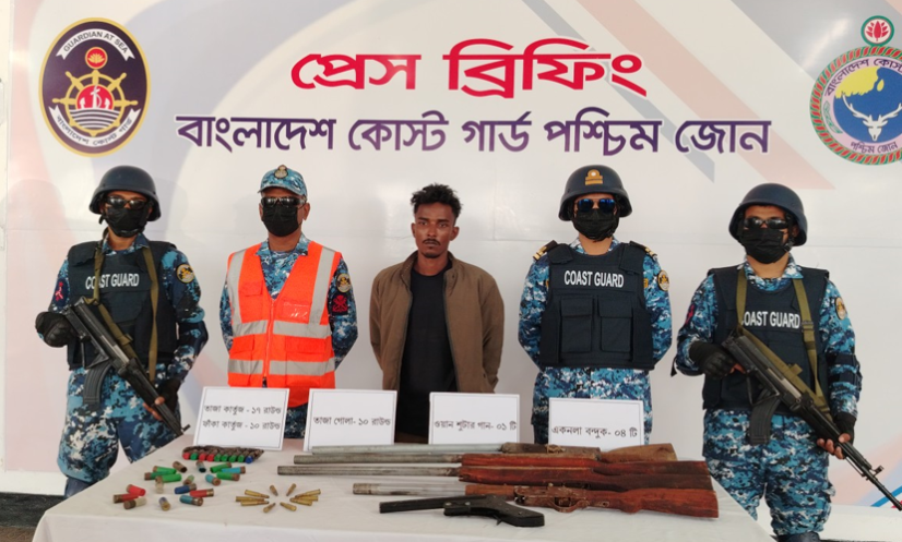 বাগেরহাট: মুক্তিপণের দাবিতে জেলেদের জিম্মির ঘটনায় সাগরে যখন জেলেরা মাছ ধরা বন্ধ রেখেছে, তখন অস্ত্র ও গোলাবারুদসহ সুন্দরবনের দুর্ধর্ষ করিম-শরীফ ডাকাত বাহিনীর এক সক্রিয় সদস্যকে আটক করেছে বাংলাদেশ কোস্ট গার্ড (বিসিজি)।