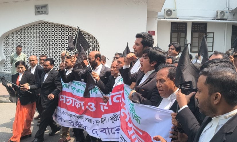 বৃহস্পতিবার (২৩ এপ্রিল) কালো পতাকা মিছিল নিয়ে আদালত চত্বর প্রদক্ষিণ করেন তারা। পরে অনুষ্ঠিত সমাবেশে আইনজীবী নেতারা ঘোষণা দেন, আগামী সোমবারের (২৭ এপ্রিল) মধ্যে এ সিদ্ধান্ত প্রত্যাহার না হলে মঙ্গলবার (২৮ এপ্রিল) থেকে অবস্থান কর্মসূচি শুরু করা হবে।