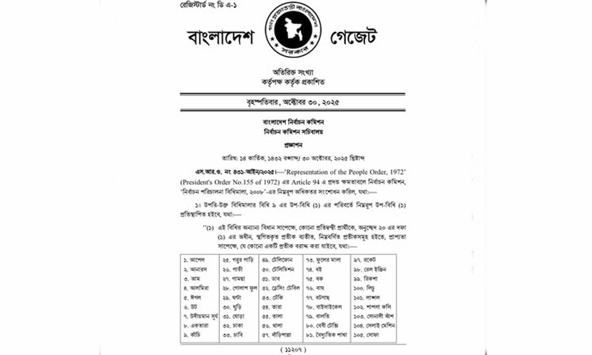 আগের ২৪ সেপ্টেম্বরের এস.আর.ও. নং ৩৮১-আইন/২০২৫ বাতিল করা হয়েছে এবং নতুন তালিকাটি কার্যকর হয়েছে। ইসি সূত্রে জানা গেছে, তালিকা হালনাগাদ করা হয়েছে নির্বাচনি পরিবেশ আধুনিক করার অংশ হিসেবে।