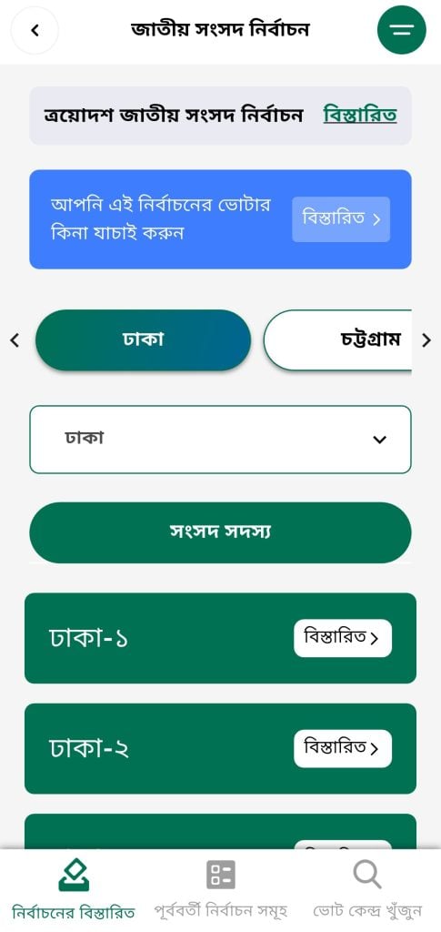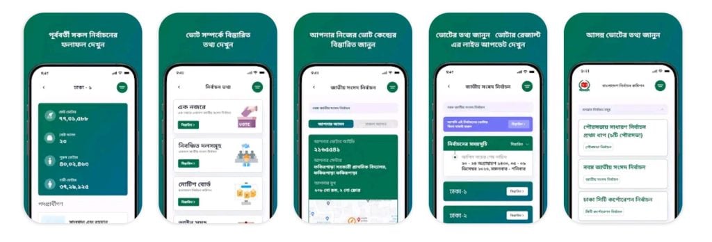 প্রযুক্তির সর্বোচ্চ ব্যবহার নিশ্চিত করতে অ্যাপটিতে ভোটকেন্দ্রের জিও লোকেশন, কেন্দ্রের ছবি এবং ভোটারের বর্তমান অবস্থান থেকে ওই কেন্দ্রের দূরত্ব কতটুকু তা ম্যাপের মাধ্যমে দেখার সুযোগ রাখা হয়েছে। ফলে ভোটাররা আগেভাগেই কেন্দ্র সম্পর্কে পরিষ্কার ধারণা পাবেন। শুধু কেন্দ্রের তথ্যই নয়, অ্যাপটির মাধ্যমে নিবন্ধিত রাজনৈতিক দলগুলোর বিস্তারিত তথ্যসহ নির্বাচনে প্রতিদ্বন্দ্বী প্রার্থীদের দেওয়া হলফনামা এবং নির্বাচন-সংশ্লিষ্ট গুরুত্বপূর্ণ সব নির্দেশনাও দেখা যাবে। এছাড়া নির্বাচনের দিন ভোটের ফলাফল ও অন্যান্য আপডেট সরাসরি এই অ্যাপ থেকেই পাওয়ার ব্যবস্থা করেছে কমিশন।