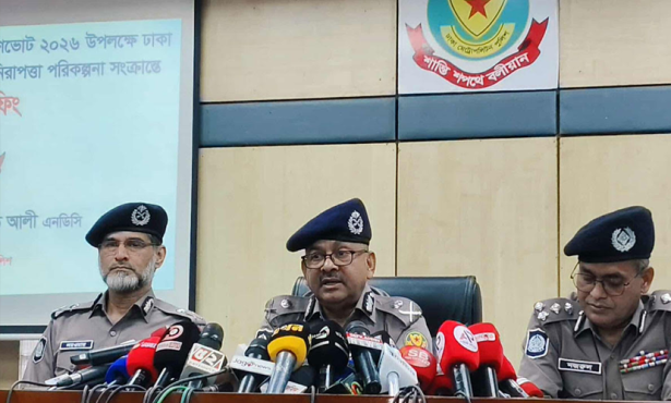 সোমবার (৯ ফেব্রুয়ারি) দুপুরে ডিএমপি মিডিয়া সেন্টারে আয়োজিত “ত্রয়োদশ জাতীয় সংসদ নির্বাচন ও গণভোট ২০২৬ উপলক্ষে ঢাকা মেট্রোপলিটন পুলিশ কর্তৃক গৃহীত নিরাপত্তা পরিকল্পনা সংক্রান্ত” সংবাদ সম্মেলনে তিনি এ তথ্য জানান।