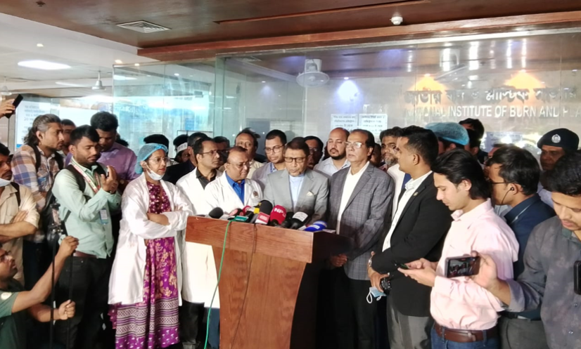 মন্ত্রী বলেন, ‘বার্ন ইনস্টিটিউট থেকে সর্বোচ্চ চিকিৎসা দেওয়া হচ্ছে। যত ধরনের মেডিসিন আছে সব হাসপাতাল কর্তৃপক্ষ দিচ্ছে। বাকি আরও কিছু লাগলে আমরা আশ্বস্ত করেছি, আমরা সেটা যোগান দেব। তবে আগুনে পোড়া মানুষের অনেক কষ্ট হয়। আমরা চেষ্টা করছি শেষ মুহূর্ত পর্যন্ত চেষ্টা করে যাব। সবাই দোয়া করবেন আল্লাহ যেন সবাইকে রক্ষা করেন।’