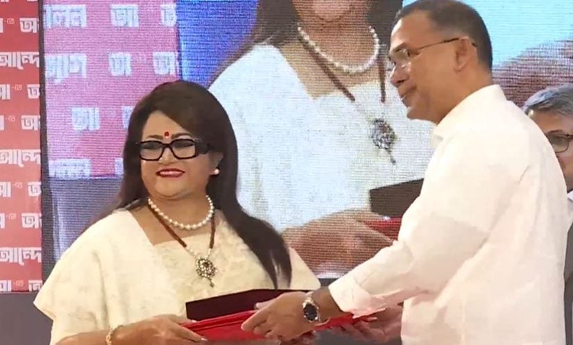 প্রধানমন্ত্রীর হাত থেকে একুশে পদক নিচ্ছেন অভিনেত্রী ফরিদা আক্তার ববিতা।