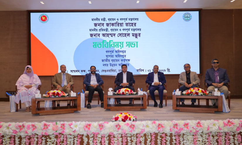গণপূর্ত অধিদফতর, স্থাপত্য অধিদফতর, জাতীয় গৃহায়ন কর্তৃপক্ষ এবং নগর উন্নয়ন অধিদফতরের কর্মকর্তাদেরর সঙ্গে আজকের মতবিনিময় সভায় উপস্থিত ছিলেন মন্ত্রণালয়ের প্রতিমন্ত্রী আহম্মদ সোহেল মনজুর ও সচিব মো. নজরুল ইসলাম।