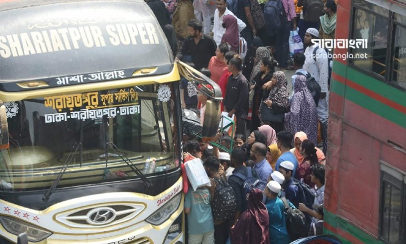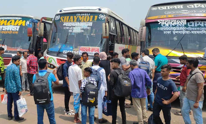 সরেজমিনে দেখা যায়, সকাল থেকেই টার্মিনালগুলোতে মানুষের স্রোত। গাবতলী টার্মিনালে উত্তরবঙ্গ ও দক্ষিণবঙ্গগামী যাত্রীদের উপস্থিতি ছিল চোখে পড়ার মতো। সায়েদাবাদ ও মহাখালী বাস টার্মিনালেও রয়েছে প্রচুর যাত্রীর উপস্থিতি। যাত্রীদের চাপে যেন পা ফেলার জায়গা নেই। ময়মনসিংহ ও টাঙ্গাইলগামী মানুষের ভিড়ে পুরো এলাকা স্থবির হয়ে পড়েছে মহাখালী বাস টার্মিনাল এলাকা। হাতে ব্যাগ, বগলে পোটলা আর চোখে প্রিয়জনদের দেখার ব্যাকুলতা নিয়ে বাসের জন্য অপেক্ষা করছেন হাজারো মানুষ। তবে সময় মত বাস না ছাড়া ও বাড়তি ভাড়া নেওয়ারও রয়েছে অভিযোগ।
