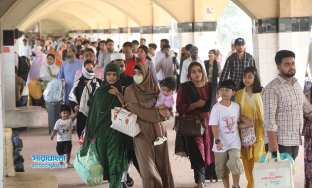 সরেজমিনে দেখা গেছে, বৃহস্পতিবার ভোর থেকেই কমলাপুর রেলওয়ে স্টেশন এলাকাজুড়ে যাত্রীদের উপচে পড়া ভিড় বাড়ছে। প্রতিটি প্ল্যাটফর্মে ছিল মানুষের ঢল, যেন তিল ধারণের ঠাঁই নেই। এরই মধ্যে নিরাপদ ভেবে মানুষ ট্রেনকেই বেছে নিয়েছেন।