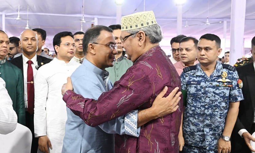 জাতীয় ঈদগাহে ঈদের প্রধান জামাত শেষে কোলাকুলি করছেন রাষ্ট্রপতি মো. সাহাবুদ্দিন ও প্রধানমন্ত্রী তারেক রহমান।