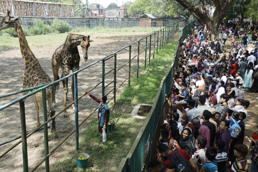 গাজীপুর থেকে চিড়িয়াখানাতে আসা দর্শনার্থী মো. রাশেদ বলেন, ‘ঈদের ছুটিতে বাচ্চাদের নিয়ে ঘুরতে এসেছি। অনেক ভিড়, তারপরও বাচ্চারা খুব আনন্দ পাচ্ছে।’