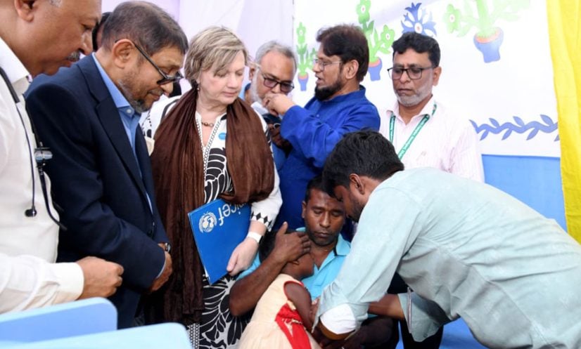 টিকাদান কর্মসূচির উদ্বোধন অনুষ্ঠানে বাংলাদেশে ইউনিসেফের প্রতিনিধি রানা ফ্লাওয়ার্স, বাংলাদেশে বিশ্ব স্বাস্থ্য সংস্থার (ডব্লিউএইচ) প্রতিনিধি ডা. আহমেদ জামশিদ মোহামেদ এবং স্বাস্থ্য অধিদফতরের মহাপরিচালক অধ্যাপক ডা. প্রভাত চন্দ্র বিশ্বাস উপস্থিত ছিলেন।