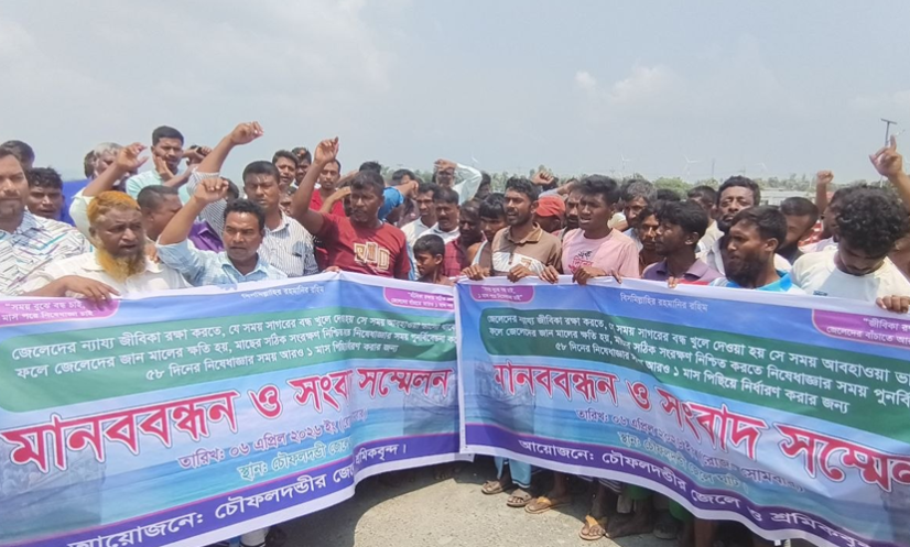 সাগরে মাছ ধরায় নিষেধাজ্ঞা, জেলেদের বিক্ষোভ মিছিল
