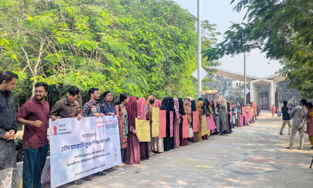 শুক্রবার (১৪ নভেম্বর) সকাল ১১টা ১০ মিনিট থেকে প্রায় এক ঘণ্টাব্যাপী এই কর্মসূচিতে দু’শ থেকে আড়াইশ মানুষ অংশ নেন।
