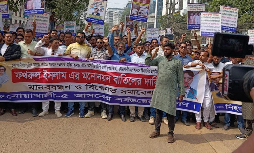 বিক্ষোভকারীরা দলীয় উচ্চপর্যায়ের কাছে ফখরুল ইসলামের মনোনয়ন দ্রুত পুনর্বিবেচনা এবং বাতিলের দাবিও জানান।