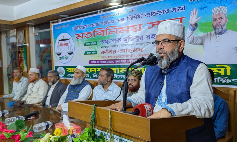 মঙ্গলবার (১৮ নভেম্বর) রাতে বাংলাদেশ জামায়াতে ইসলামী খিলগাঁও উত্তর থানা (৩ নম্বর ওয়ার্ড) উদ্যোগে ‘দুর্নীতিমুক্ত সমাজ গঠন’ শীর্ষক মতবিনিময় সভায় প্রধান অতিথির বক্তব্যে তিনি এসব কথা বলেন।