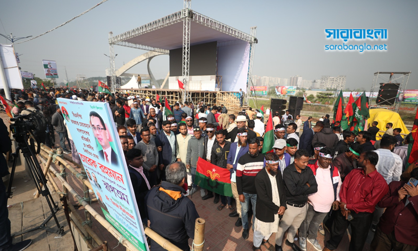এর আগে, রোববার (২১ ডিসেম্বর) দুপুর থেকে বিশ্বরোড-পূর্বাচলমুখী ৩০০ ফিট সড়কের একটি অংশজুড়ে মঞ্চ তৈরির কাজ শুরু হয়। বুধবার (২৪ ডিসেম্বর) মঞ্চের নির্মাণকাজ সম্পন্ন হয়। মঞ্চটির সামনে ও দুই পাশে ইতোমধ্যে দেশের বিভিন্ন জেলা থেকে আসা নেতাকর্মীরা মিছিল নিয়ে অবস্থান নিয়েছেন।