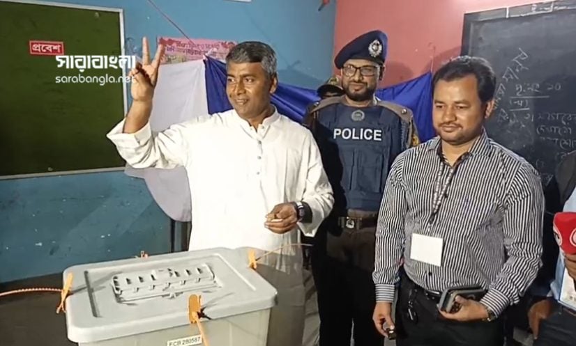 ঢাকা: ঢাকা-১৮ আসনে বিএনপির ধানের শীষের প্রার্থী এসএম জাহাঙ্গীর হোসেন তার ভোট দিয়েছেন।