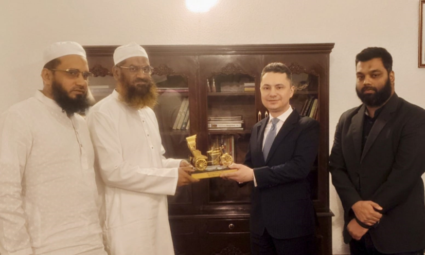 ঢাকা: বাংলাদেশ খেলাফত মজলিসের আমির আল্লামা মামুনুল হকের নেতৃত্বে একটি প্রতিনিধিদল ঢাকাস্থ রাশিয়ান দূতাবাসে সৌজন্য সাক্ষাৎ করেন। বৈঠকে রাশিয়ান দূতাবাসের পক্ষে নেতৃত্ব দেন ভিয়াচেস্লাভ সেন্টিউরিন, মিনিস্টার কাউন্সেলর ও ডেপুটি চিফ অব মিশন।