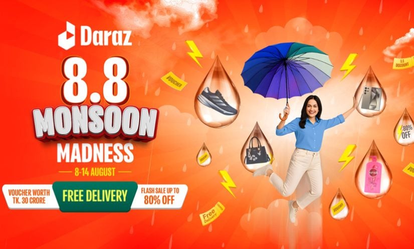 ঢাকা: বর্ষাকে কেন্দ্র করে দেশের শীর্ষস্থানীয় অনলাইন মার্কেটপ্লেস দারাজ বাংলাদেশ শুরু করতে যাচ্ছে ‘৮.৮ মনসুন ম্যাডনেস’ ক্যাম্পেইন। আগামী ৮ থেকে ১৪ আগস্ট পর্যন্ত চলবে এই ক্যাম্পেইন। এতে গ্রাহকরা পাবেন ৮০ শতাংশ পর্যন্ত ছাড়, বিশেষ ডিল, ফ্রি ডেলিভারি, ক্যাশব্যাক ও পুরস্কার জেতার সুযোগ।