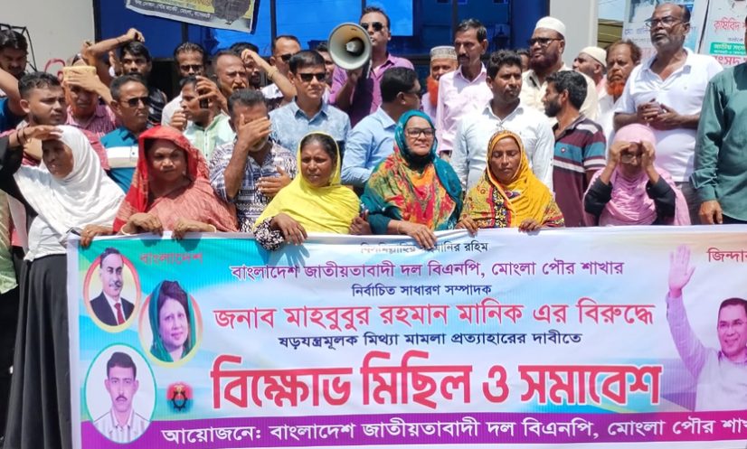 বাগেরহাট: জেলার মোংলায় পৌর বিএনপির সাধারণ সম্পাদক মো. মাহবুবুর রহমান মানিকের বিরুদ্ধে দায়ের করা মামলার প্রতিবাদে বিক্ষোভ মিছিল ও সমাবেশ অনুষ্ঠিত হয়েছে।
