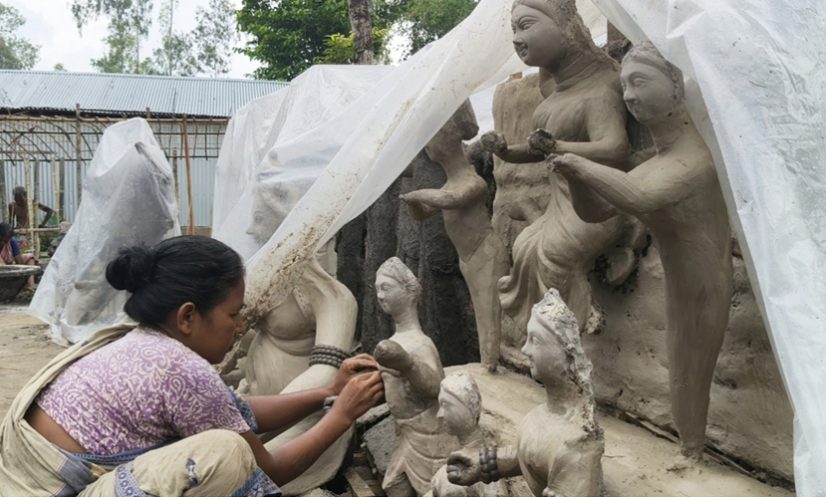 প্রতিবছর সনাতন ধর্মাবলম্বীদের দুর্গোৎসবকে ঘিরে প্রতিমা কারিগরদের ব্যস্ততা চোখে পড়লেও এ বছর ভিন্ন আঙ্গিকের চিত্র দেখা মিলল কুড়িগ্রামের পাল পাড়া আর কুমার পাড়ার প্রতিটি প্রতিমা কারখানায়। এ বছর কুড়িগ্রামে অধিক সংখ্যক পূজা মণ্ডপের সংখ্যা বাড়ায় এবং শেষ মুহূর্তে প্রতিমার অর্ডার আসায় প্রথম বারের মতো সংসার সামলিয়ে এবার পারিবারিক ব্যবসা সামলাতে নিজ হাতে প্রতিমা গড়ছেন মালাকরদের স্ত্রী, মা ও পূত্রবধুরা।