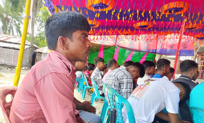বুধবার (১ অক্টোবর) কলাগাছি সার্বজনীন দূর্গা মণ্ডপে দেখা যায় এই আনসার সদস্যকে। তবে, ব্যতিক্রম বলতে। তার কার্যক্রমের সঙ্গে সঙ্গে পূজায়ও নিয়োজিত তিনি। সবাই যখন পূজায় নিয়োজিত ঠিক তেমনি তিনিও ডিউটির সঙ্গে পূজা দিতে ব্যস্ত। পাশে যেতেই তার সঙ্গে কথা বলে জানতে পারলাম। তিনিও হিন্দু সম্প্রদায়ের মানুষ।
