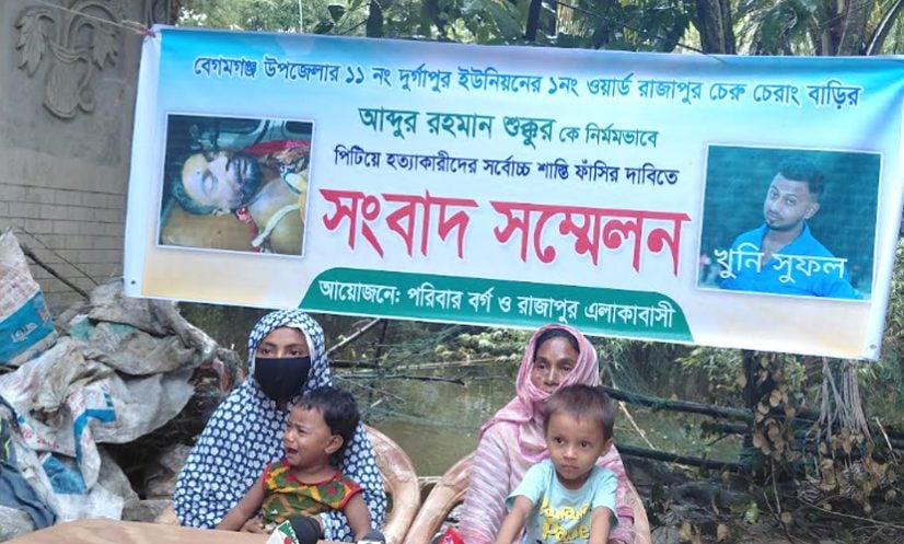 নোয়াখালী: নোয়াখালীর বেগমগঞ্জ উপজেলার দুর্গাপুর ইউনিয়নে আব্দুর রহমান শুক্কুর (৩৭) নামের এক বিএনপি কর্মীকে পিটিয়ে হত্যার অভিযোগ উঠেছে। এই ঘটনায় জড়িতদের বিচারের দাবিতে সংবাদ সম্মেলন করেছে নিহতের পরিবার।