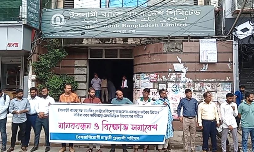 এ সময় বক্তারা বলেন, স্বৈরাচারের দোসর এস আলম ও তার সহযোগীরা ব্যাংকিং সেক্টরে প্রভাব বিস্তারের মাধ্যমে অবৈধভাবে অযোগ্যদের নিয়োগ দিয়ে ব্যাংক সেক্টরকে মেধাশূণ্য করেছে। অবৈধভাবে নিয়োগপ্রাপ্তা স্বাভাবিক ব্যাংকিং কার্যক্রমে ব্যাঘাত ঘটিয়ে নৈরাজ্য সৃষ্টি করছে। স্বৈরাচার হাসিনা ও ব্যাংক ডাকাত এস আলমের ইন্ধনে অরাজকতা সৃষ্টি করে ক্রমাগত ইসলামী ব্যাংক ও দেশের অর্থনৈতিক পরিস্থিতি নাজুক ও ধ্বংস করার নীল নকশা বাস্তবায়ন করছে বলে অভিযোগ তুলেন বক্তারা।