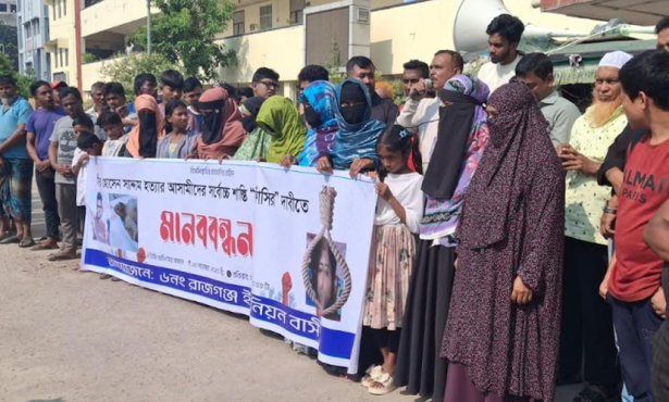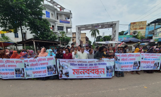 সোমবার (৬ অক্টোবর) সকালে শহরের নিউ মার্কেট মোড়ে ব্যাংকের ফরিদপুর শাখার সামনের সড়কে এই মানববন্ধন অনুষ্ঠিত হয়।