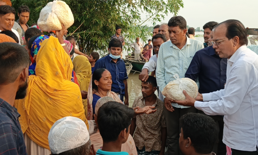 বন্যা দুর্গতদের মাঝে ত্রাণ দিলেন বিএনপি সভাপতি দুলু