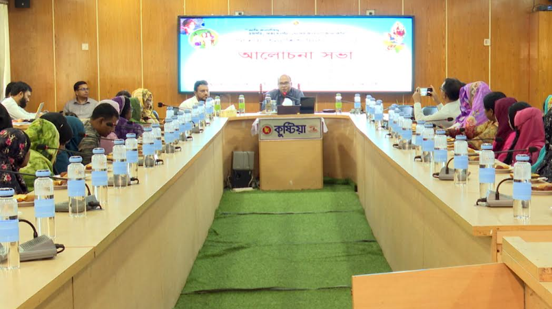 জেলা প্রশাসন ও জেলা মহিলা বিষয়ক অধিদপ্তরের যৌথ উদ্যোগে আয়োজিত অনুষ্ঠানে সভাপতিত্ব করেন জেলা মহিলা বিষয়ক অধিদপ্তরের উপপরিচালক নুরে সফুরা ফেরদৌস। সভায় প্রধান অতিথি ছিলেন কুষ্টিয়ার জেলা প্রশাসক আবু হাসনাত মোহাম্মদ আরেফিন।
