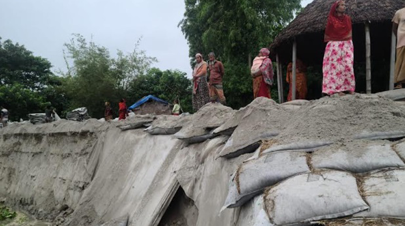 গাইবান্ধা: সুন্দরগঞ্জে তিস্তা নদীর ভয়াবহ ভাঙনে তিন শতাধিক পরিবারের বসতভিটা, গাছপালা, ফসলি জমি ও রাস্তা নদীগর্ভে বিলীন হয়েছে। পানিতে ভেসে গেছে ঘর ও গৃহপালিত পশু। ভাঙনের কবলে পড়েছে শিক্ষা প্রতিষ্ঠানসহ বিস্তীর্ণ এই জনপদ।