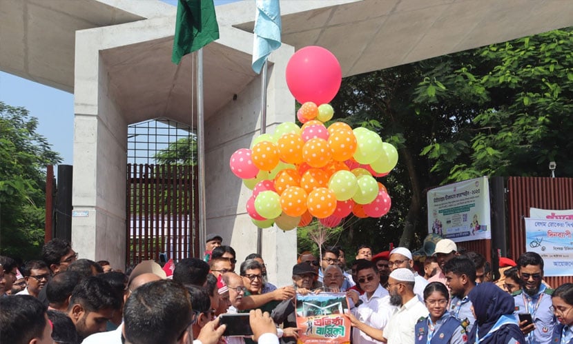 সকালে বেলুন উড়িয়ে কর্মসূচির উদ্বোধন করা হয়।