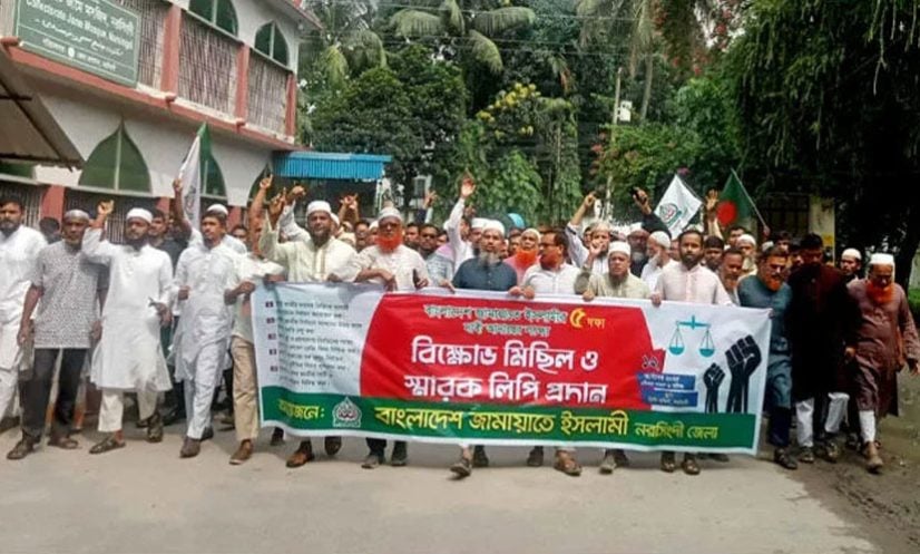 নরসিংদী: ১৪ দলীয় জোটকে নিষিদ্ধ ও জুলাই সনদের ভিত্তিতে আগামী ফেব্রুয়ারিতে অবাধ, সুষ্ঠু ও গ্রহণযোগ্য জাতীয় নির্বাচনসহ পাঁচ দফা দাবিতে বিক্ষোভ মিছিল ও স্মারকলিপি প্রদান করেছে জেলা জামায়াতে ইসলামী।