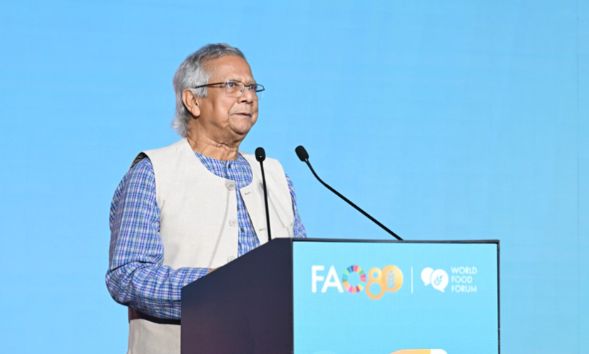 ড. ইউনূস বলেন, ‘আমাদের প্রধান খাদ্যশস্য ধান। ধান উৎপাদনে স্বয়ংসম্পূর্ণ হয়েছি আমরা। বাংলাদেশ বিশ্বের শীর্ষ ধান, শাকসবজি ও মিঠাপানির মাছ উৎপাদনকারী দেশগুলোর একটি। আমাদের কৃষকরা ফসল চাষের ঘনত্ব ২১৪ শতাংশে উন্নীত করেছেন। আমরা ১৩৩টি জলবায়ু-সহনশীল ধানের জাত উদ্ভাবন করেছি।’
