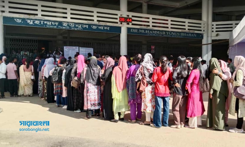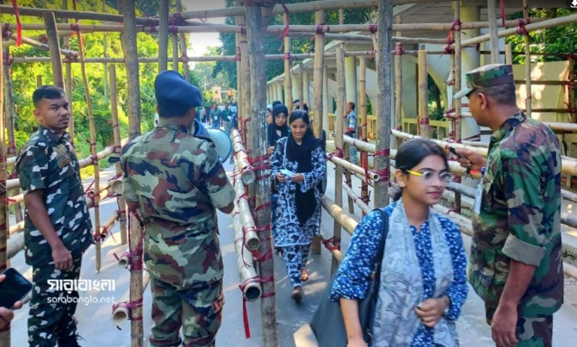 ভোটকেন্দ্রের বাইরে শিক্ষার্থীদের লাইন। ছবি: সারাবাংলা
