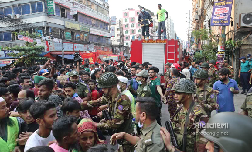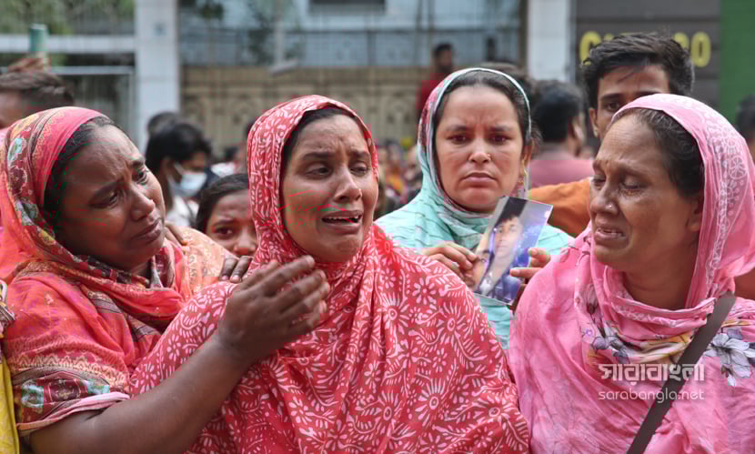 রাজধানীর মিরপুরের রূপনগরে আনোয়ার গার্মেন্টস ও কেমিক্যাল গোডাউনে লাগা ভয়াবহ আগুন নিয়ন্ত্রণে এসেছে প্রায় ২৭ ঘণ্টা পর। আগুনে এ পর্যন্ত ১৬ জনের নিহতের খবর পাওয়া গেছে। জানা গেছে, আগুন লাগা ওই গার্মেন্টস ও কেমিক্যাল গোডাউনের কোনো সরকারি অনুমোদন ছিল না। ছিল না পর্যান্ত আগুন নির্বাপন ও নিয়ন্ত্রণ ব্যবস্থা। এভাবেই যত্রতত্র গড়ে ওঠা পোশাক কারখানাগুলো যেন একেকটা মৃত্যুকূপ। যেখানে প্রতিনিয়ত পুড়ে মরে মানুষ ও মানবতা। গতকালের ভয়াবহ অগ্নিকাণ্ড ও মানুষের আহাজারির ছবিগুলো তুলেছেন সারাবাংলার সিনিয়র ফটোকরেসপন্ডেন্ট হাবিবুর রহমান।