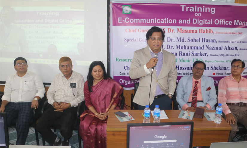 এ সময় তিনি বলেন, ‘ই-কমিউনিকেশন ও ডিজিটাল অফিস ম্যানেজমেন্ট একটি সময় উপযোগী প্রশিক্ষণ। আমরা যদি কর্মকর্তাদের দক্ষ মানবসম্পদে পরিণত করতে পারি, তারাই স্মার্টলি বিশ্ববিদ্যালয়কে এগিয়ে নিতে পারবে। এতে করে অফিসের সময়ও বাঁচবে। তবে দুই দিনের প্রশিক্ষণে দক্ষ হওয়া সম্ভব নয়। যথাযথ প্রশিক্ষণ শেষে আমাদের অবশ্যই চর্চা অব্যাহত রাখতে হবে।’