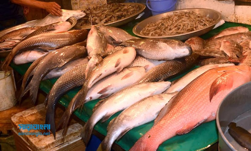 সাগরে মাছ ধরায় নিষেধাজ্ঞা এখনও বহাল আছে। এর ফলে বাজারে মাছের বাড়তি দর এখনও নিম্নমুখী হয়নি। বাজারে বড় সাইজের বাগদা প্রতি কেজি ৯০০ টাকা, গলদা চিংড়ি ৮৫০ ও ছোট চিংড়ি ৭০০ টাকায় বিক্রি হচ্ছে। বড় রুই ৪৫০ থেকে ৫৮০ টাকা, মাঝারি ৪৬০ টাকা ও ছোট রুই ৩৬০ টাকা কেজি দরে বিক্রি হচ্ছে। কাতলা মাছ ৩৬০ থেকে ৪৫০ টাকায় বিক্রি হচ্ছে। এছাড়া ছোট কোরাল মাছ ৭০০ থেকে ৯০০ টাকা, তেলাপিয়া ২৫০ টাকা, সিলভার কার্প ২৫০, পাবদা ৪০০, রূপচাঁদা ৮৫০ ও টেংরা ৮০০ টাকা কেজি দরে বিক্রি হচ্ছে।