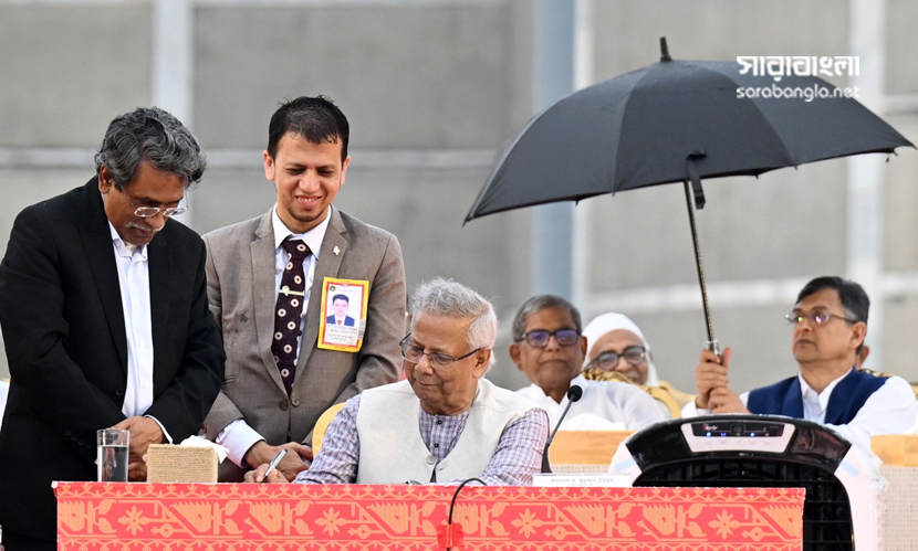 জুলাই জাতীয় সনদে সই করেন প্রধান উপদেষ্টা অধ্যাপক মুহাম্মদ ইউনূস। ছবি: সারাবাংলা