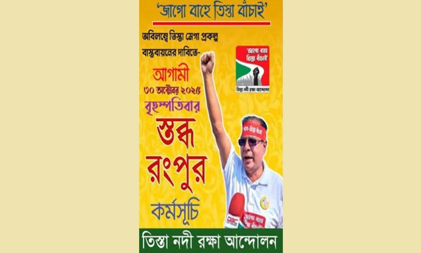 তিনি বলেন, ‘সরকার যদি নির্বাচনের তফসিল ঘোষণার আগে নিজস্ব অর্থায়নে তিস্তা মহাপরিকল্পনার কাজ শুরু না করে, তবে তিস্তাপাড়ের মানুষকে সঙ্গে নিয়ে বৃহত্তর আন্দোলন গড়ে তোলা হবে। তিস্তা নদী শুধু একটি নদী নয়—এটি আমাদের জীবন, জীবিকা ও সংস্কৃতির প্রতীক।’