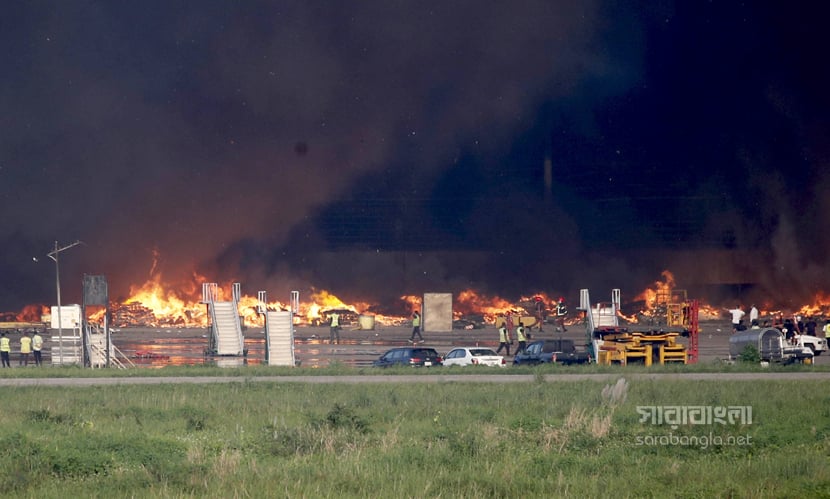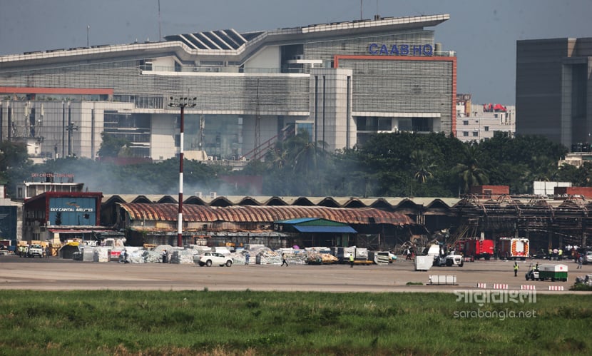 হযরত শাহজালাল আন্তর্জাতিক বিমানবন্দরের কার্গো ভিলেজে (পণ্য রাখার স্থান) হঠাৎ আগুনে পুড়েছে হাজারো কোটি টাকার মালামাল। ১৮ অক্টোবর লাগা এই আগুন নিয়ন্ত্রণে কাজ করে ফায়ার সার্ভিসের ৩৭টি ইউনিট। তাদের পাশাপাশি বাংলাদেশ বিমানবাহিনী, সেনাবাহিনী এবং নৌবাহিনীর ফায়ার, মেডিক্যাল ও সংশ্লিষ্ট ইউনিটের সদস্যরাও আগুন নেভানোর কাজে যোগ দেয়। এর পর টানা সাত ঘণ্টার প্রচেষ্টায় আগুন নিয়ন্ত্রণে আসে। তবে আগুন নেভাতে সময় লাগে পরদিন ১৯ অক্টোবর সকাল পর্যন্ত। আগুন নিয়ন্ত্রণে কাজ করতে গিয়ে আনসার বাহিনীর ২৫ সদস্যসহ মোট ৩৫ জন আহত হন। তবে এতে কেউ নিহত হননি। কার্গো ভিলেজের এই অগ্নিকাণ্ড এবং পরবর্তী অবস্থার ছবিগুলো ফ্রেমবন্দি করেছেন সারাবাংলার সিনিয়র ফটোকরেসপন্ডেন্ট হাবিবুর রহমান।