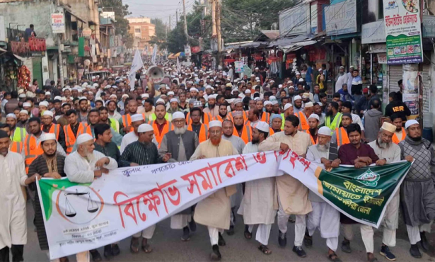 মিছিল শেষে সমাবেশে নিহত জুবায়েদ হোসেনের আত্মার মাগফেরাত কামনা করে দোয়া করা হয়।