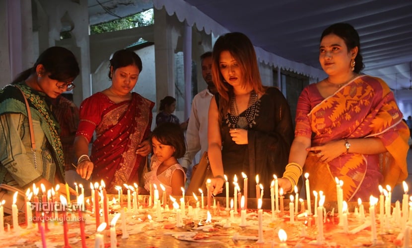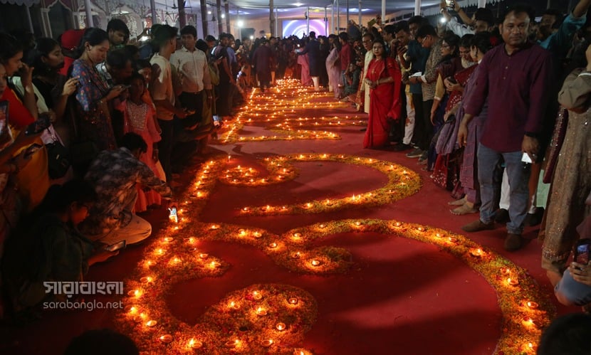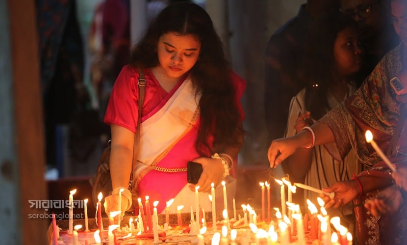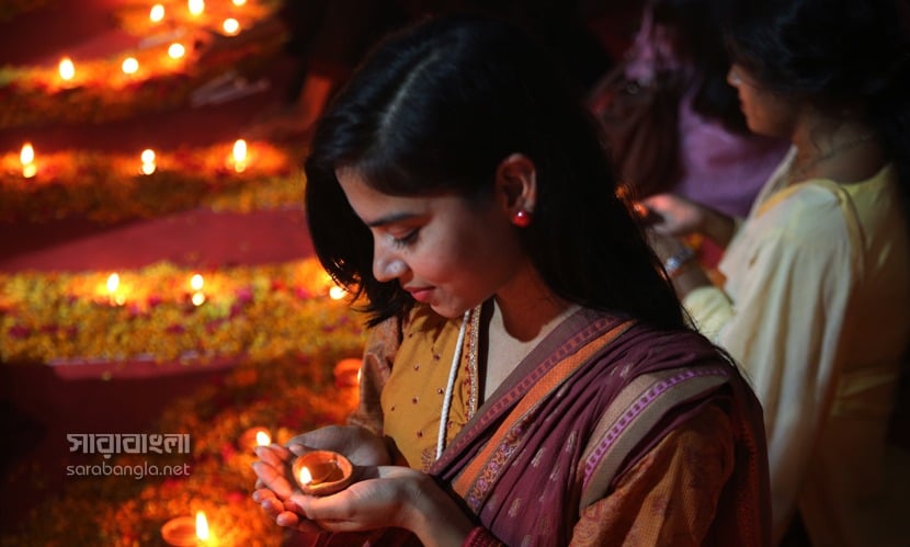 ‘দীপালিকায় জ্বালাও আলো,/ জ্বালাও আলো, আপন আলো, জয় করো এই তামসীরে’— রবীন্দ্রনাথ ঠাকুরের লেখা এই গানের পঙ্ক্তি যেন দীপাবলি উৎসবকে আরও প্রাণময় করে তোলে। ‘দীপাবলি’ সংস্কৃত শব্দ। সাধারণত ‘দীপ’ শব্দের অর্থ আলো এবং ‘বলি’ মানে সারি বা শ্রেণি। অর্থাৎ আলোর মালা বা আলোর সারি বোঝানো হয় দীপাবলিকে। এই দীপাবলিতে সম্পদের দেবী লক্ষ্মীর আরাধনা হয়ে থাকে। মানবজীবনের নিত্যকার অবসাদ-বিষাদ-আঁধার ঘুচিয়ে জ্ঞানের আলো জ্বালানোর আহ্বান এই উৎসবের মূল সুর। সনাতন ধর্মের প্রাজ্ঞজনেরা বিশ্বাস করেন, এই আলোর উৎসবকে কেন্দ্র করে মানুষ জ্ঞানের আলোর পথ খোঁজে। প্রতিবছরের মতো এবারও দীপাবলিতে আলোর উৎসবে মেতেছিল সনাতন ধর্মের মানুষেরা। সেই উৎসবের ছবি ফ্রেমবন্দি করেছেন সারাবাংলার সিনিয়র ফটোকরেসপন্ডেন্ট হাবিবুর রহমান।