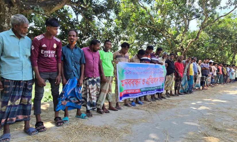 মোজাম্মেল হক মোজার সভাপতিত্বে আয়োজিত এ কর্মসূচিতে বক্তব্য দেন অভিভাবক সদস্য মো. হারুনুর রশিদ, আবু বকর সিদ্দিক, খোরশেদ আলম, মামুনুর রশিদ প্রামাণিক, আলী আকবর, ইউপি সদস্য আবু হাশেম, মোসলেম উদ্দিন শাহ, আহমেদ ফায়সাল আহমেদ ও আব্দুর রহমান প্রমুখ। মানববন্ধনে অভিভাবক, এলাকাবাসী এবং শিক্ষকসহ শতাধিক মানুষ অংশ নেন।