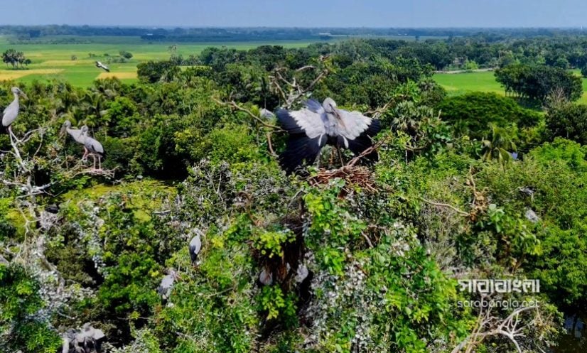 অতিথি পাখির আগমনে মুখর রাজবাড়ীর শিবরামপুর গ্রাম। ছবি: সারাবাংলা